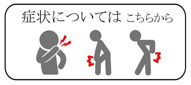 頭 痛・緑内障・白内障・斜 視・眩 暈・メニエール病・突発性難聴・花粉症・副鼻腔炎・顎関節症・頸椎ヘルニア・ストレートネック・喘 息・弾発指・テニス肘・四十肩・五十肩・側弯症・腰椎椎間板ヘルニア・腰椎脊柱管狭窄症・腰椎分離すべり症・ぎっくり腰・股関節痛・変形性膝関節症・足底筋膜炎・外反母趾・O脚X脚・各種成長痛・鬱 病・自律神経系障害・リウマチ・糖尿病・便 秘・不眠症・冷え性・妊産婦・不妊症・女性疾患 など